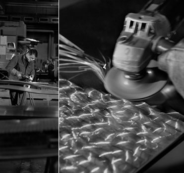 Heizkörper mit metallischen Oberflächen in Federschliff-Optik werden von keinem anderen Hersteller als uns angeboten. Es bedarf Geradlinigkeit und Erfahrung, damit sich die Elemente des von oben nach unten aufgebrachten Schliffs am Ende wie einzelne Federn zart übereinander legen.